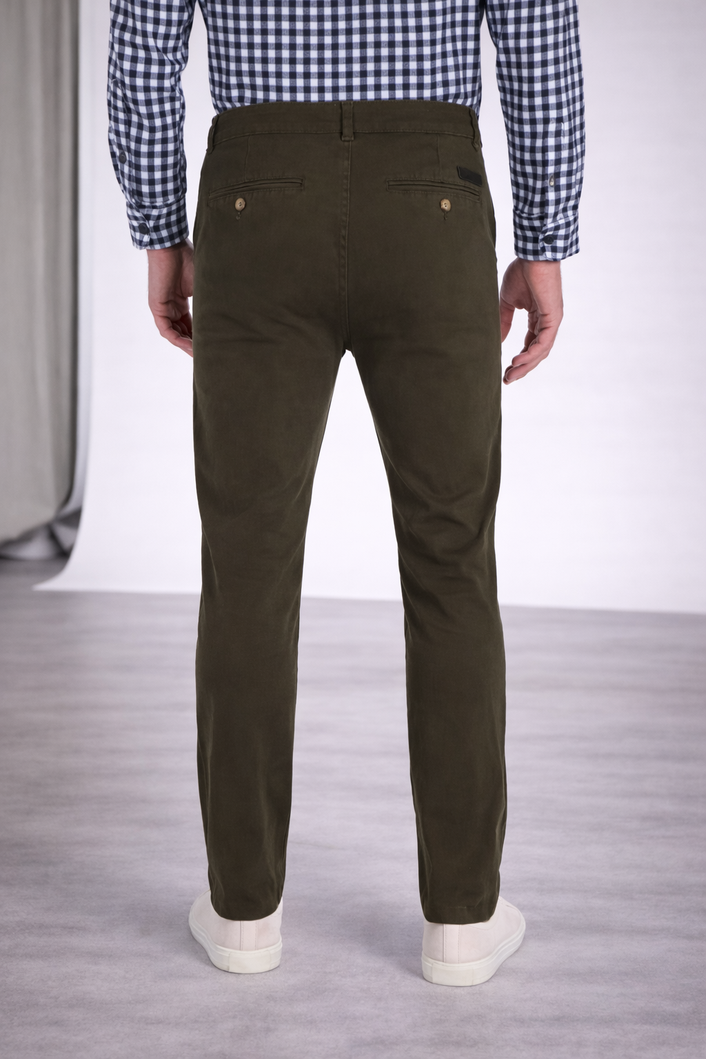Pantalón Chino de Gabardina Slim - Verde Olivo