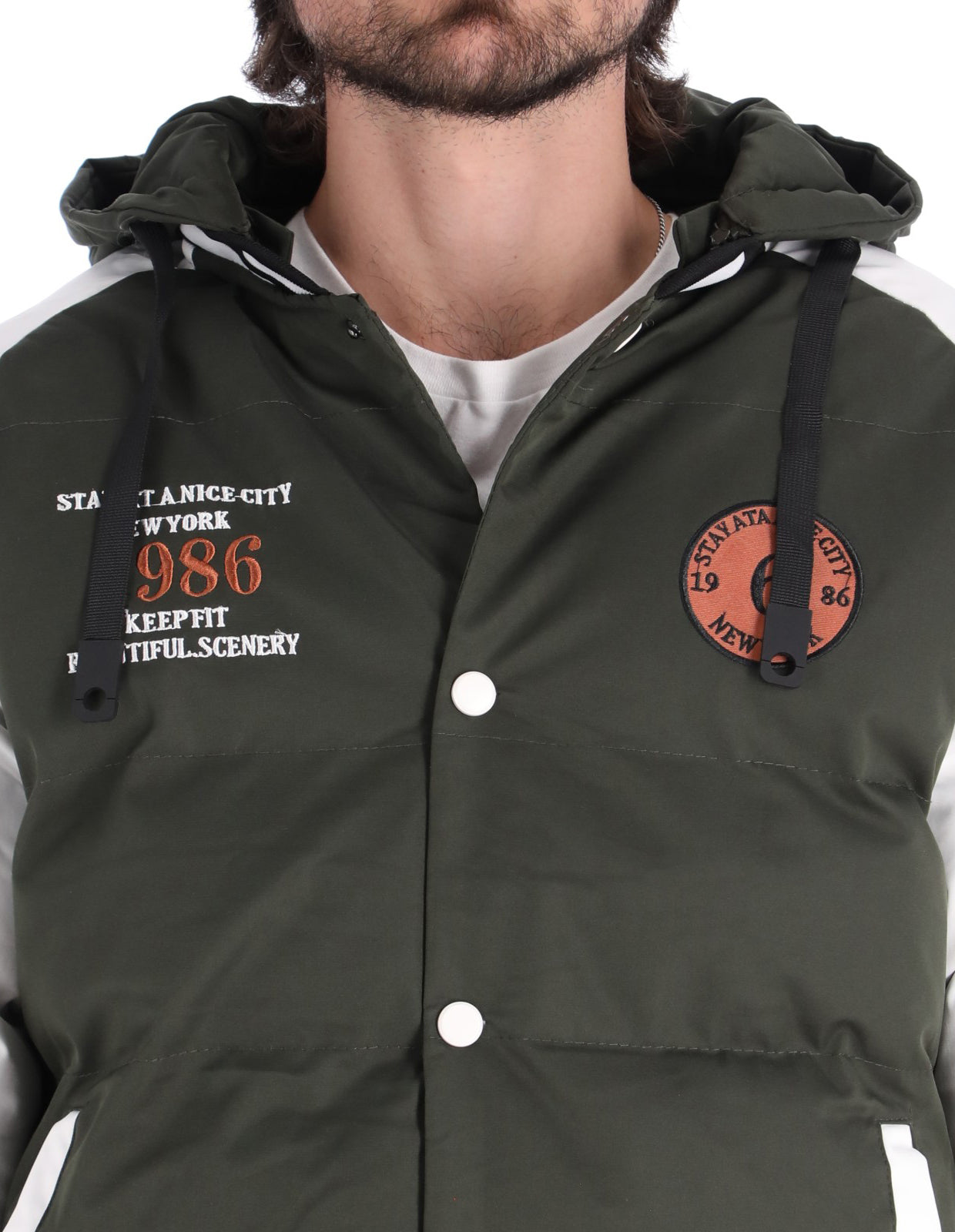 Chamarra Tipo Universitaria para Hombre con Cierre de Broches - Verde Olivo