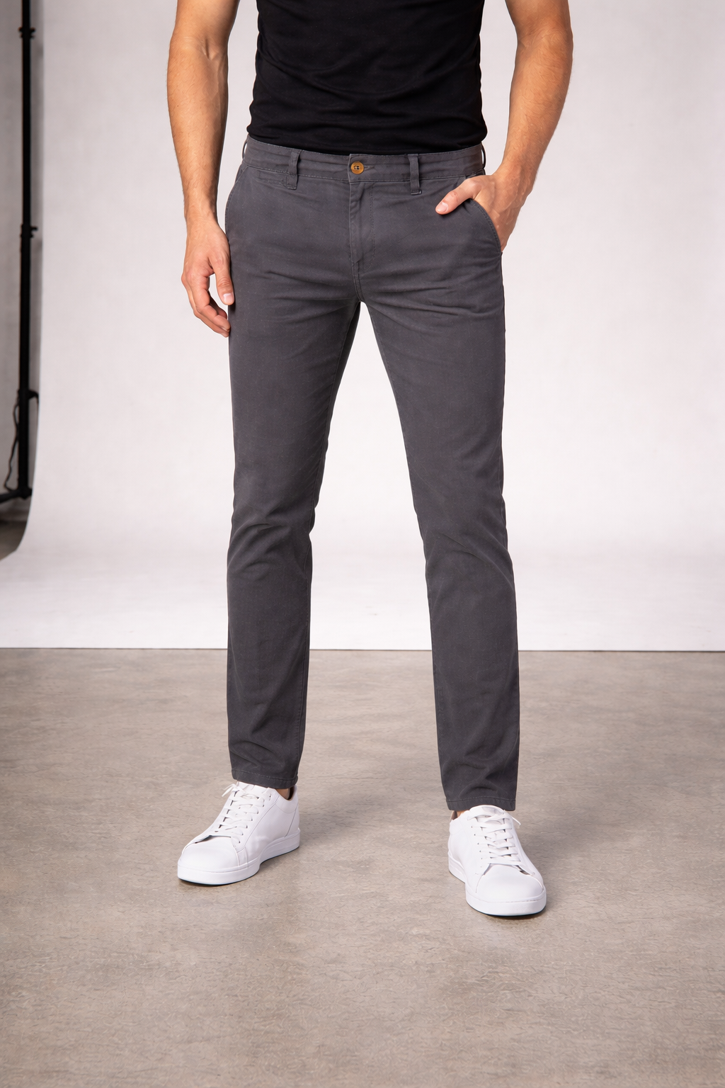 Pantalón Chino de Gabardina Slim - Gris Oxford